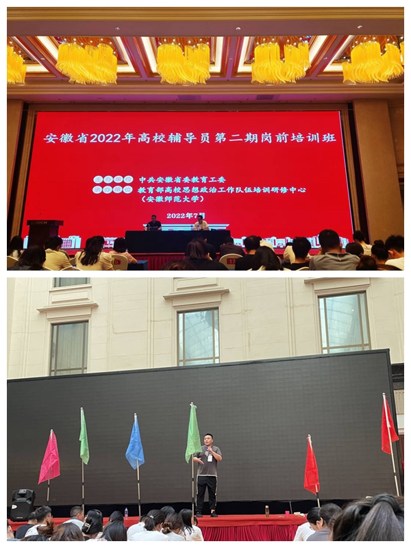聚焦高校思想政治工作骨干素养提升。我校选派辅导员参加2022年安徽省高校思想政治工作骨干第二期专题培训班。培训班上,朱平、钟小要、胡靖、路炳辉、陈九如等专家分别作《顶天与立地—用“习式风格”指导辅导员工作》《新时代高校学生工作的守正创新》《新时代高校辅导员的思想方法与工作方法》《高校思政工作者科研的若干问题》《高校思想政治工作的新形势与新任务》等专题讲座。此次培训让参训教师进一步了解了高校思想政治工作的新形势、新任务,学习掌握了新时代辅导员工作的思想方法和工作方法,有利于促进辅导员的工作能力提升和助推辅导员工作守正创新。