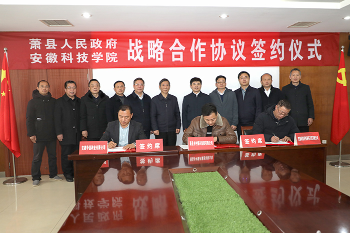 黄远友与胡先锋代表校地双方签订《萧县人民政府拼搏平台_拼搏网页版战略合作协议》。张敬强、田涛与穆克利分别代表安徽科院科技服务开发有限公司、萧县乡村振兴集团有限公司和安徽华强种业有限公司签订《安徽科华辣椒产业技术研究院共建协议》。