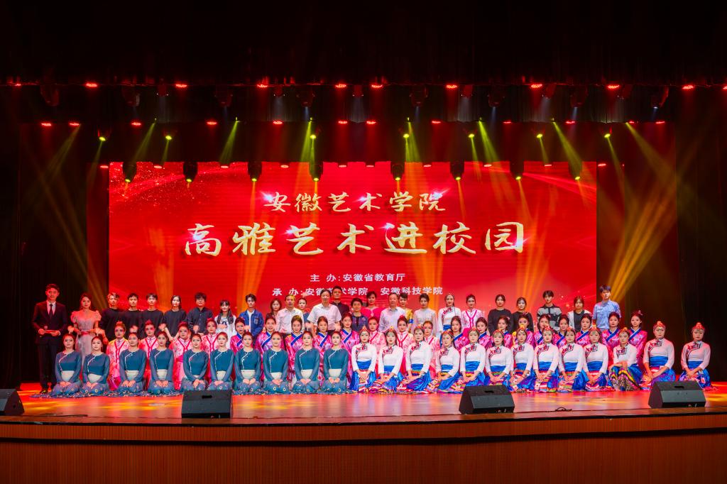 9月27日,由安徽省教育厅主办的2023年“高雅艺术进校园”活动在我校凤阳校区大学生活动中心举行。安徽艺术学院党委书记韩军,安徽艺术学院纪委书记宣扬,我校党委委员、副院长黄远友,党委委员、党委宣传(统战)部部长何永勇,校团委书记张聪与我校千余名师生共同欣赏了由安徽艺术学院带来的大型文艺展演。