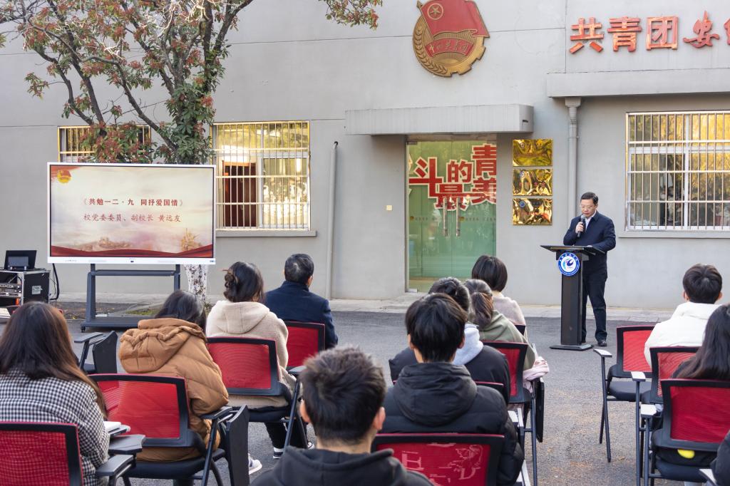 12月8日上午,拼搏平台_拼搏网页版纪念“一二·九运动”沉浸式诵读会在凤阳校区五四广场举办,校党委委员、副院长黄远友与现场同学们一道,以沉浸式诗文朗诵的形式,开展了一场别开生面的思政课。