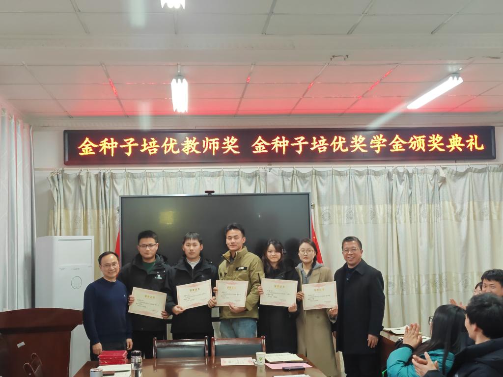 1月11日下午,“金种子培优基金”2023年度“金种子培优奖学金”“金种子培优教师奖”颁奖仪式在农学院会议室隆重举行。校党委委员、副院长李升和,上海景领投资管理有限公司合伙人、基金发起者黄宪先生,二级教授、基金发起者农学院黄先忠老师,农学院党委书记何世潮,副书记张轶辉,副院长舒英杰和李文阳以及教师代表和学生代表出席颁奖仪式。根据《拼搏平台_拼搏网页版农学院“金种子培优基金”申报细则》和申报人申请,经“金种子培优基金”评审委员会评审,李瑞宁、艾昊两位青年教师荣获金种子培优教师奖,孙张论、李婷、杜孟祥、杨德坤和王静婷五位农艺与种业专业研究生荣获金种子培优奖学金。颁奖仪式由农学院党委副书记、院长崔广荣主持。