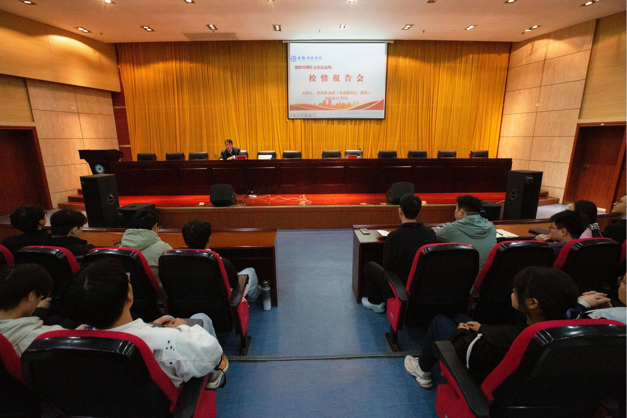 在安科成才,向未来进发。11月7日校庆日当天上午,我校在凤阳校区会议中心二楼报告厅举办以“传承•融入•共建”为主题的校情报告会。报告会由党委副书记、院长李升和教授主讲。党委宣传部、党委教师工作部和团委承办。我校300余名新进青年教师和凤阳校区新生代表参加报告会。
