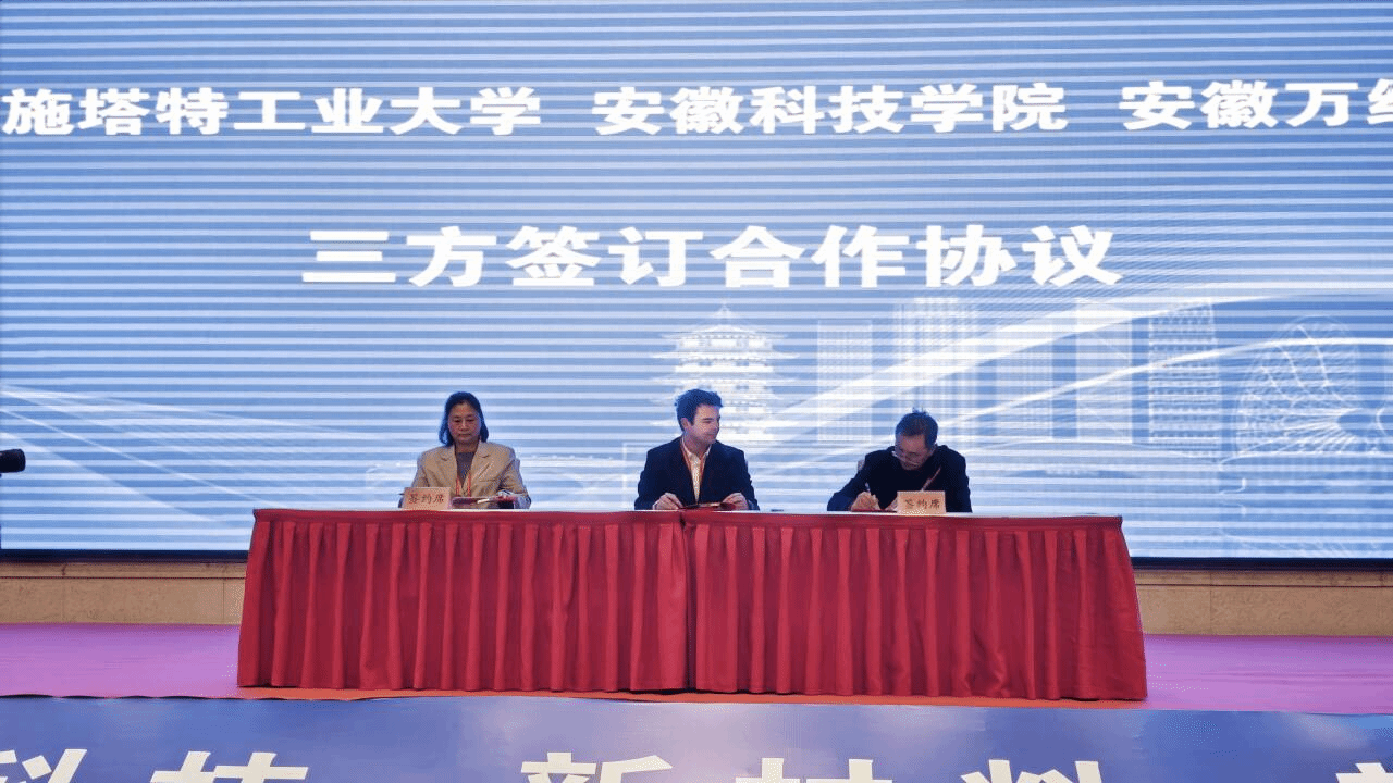 会上,我校化学与材料工程学院院长李子荣代表拼搏平台_拼搏网页版与德国达姆施塔特工业大学、安徽万绿生态公司签订三方合作协议,将访学交流、人才联合培养等纳入无机非金属材料工程省级重点学科建设体系。接下来。两校将在学生联合培养、教师互访、学术交流等方面开展深度合作,不仅有助于提升学院学科影响力,更为学校高质量发展输送国际化人才提供了支撑。