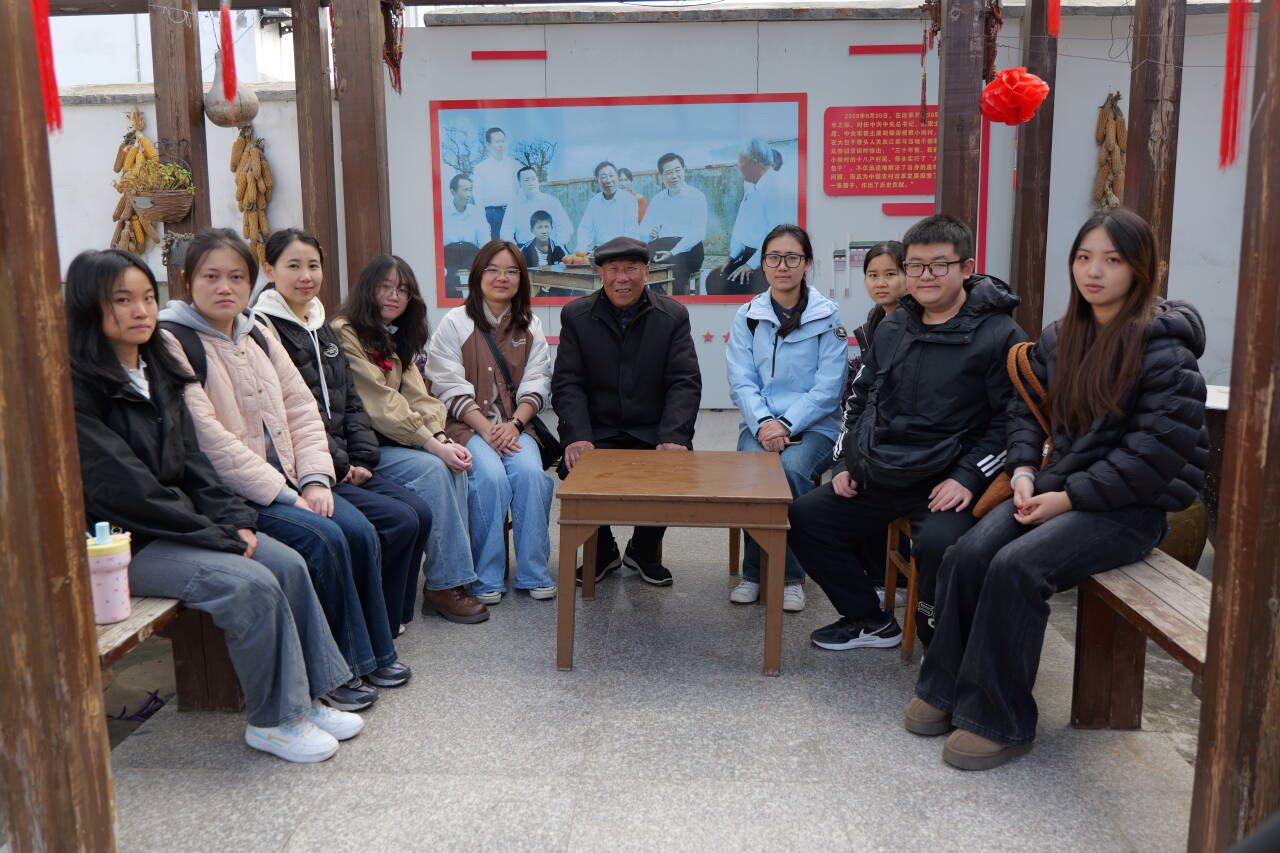 为深度挖掘与传承中国农村改革的宝贵精神财富,11月23日,校党委宣传部、校小岗办、马克思主义学院联合开展凤阳县小岗村红色口述史录制工作。马克思主义学院黄文盈老师带领中共党史党建学2025级9位硕士研究生与当年按下红手印的改革带头人——关友江、严金昌、严宏昌三位老人面对面交流。