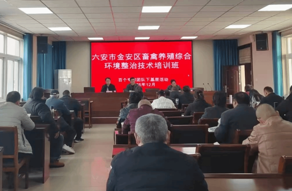 3日至4日,服务团在金安区教师发展中心会议室举办专题培训会,吸引近50名各乡镇畜牧兽医站负责人、规模养殖场代表、散养户代表及基层技术人员参与。专家团成员李飞跃教授首先详细介绍了学校的发展历程、学科特色、科研及社会服务情况,又做了“畜禽养殖废弃物处理环节的降本与增效”的专题培训,并表示学院将持续对接乡村需求,提供精准科技支持,助力我省农业高质量发展。