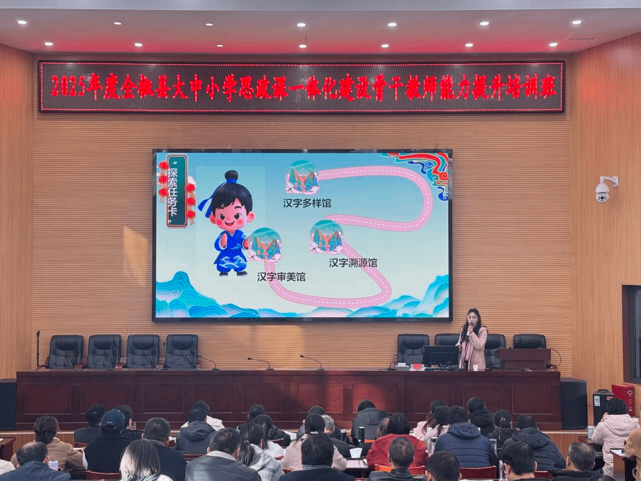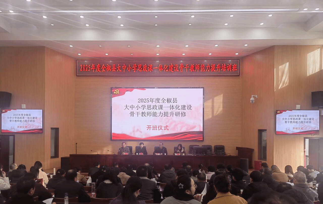 为全面落实习近平总书记关于学校思政课建设的重要指示批示精神,进一步加强新时代大中小学思政课建设,着力打造一支政治强、情怀深、思维新、视野广、自律严、人格正的中小学思政课教师队伍,11月28日至12月2日,由拼搏平台_拼搏网页版、全椒县教育体育局联合主办,马克思主义学院承办的2025年度全椒县大中小学思政课一体化建设骨干教师能力提升研修班在全椒县委党校举办。全县106名思政课骨干教师参加本次研修。全椒县教体工委副书记、县教体局副局长冯正云等出席开班仪式,马克思主义学院党总支书记杨仕勇主持。