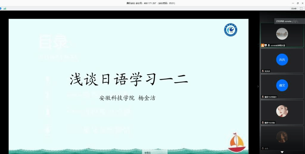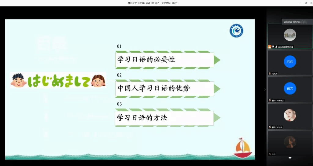 为进一步丰富外国语学院学生校园文化生活,拓宽学生对日本文化的了解和认识的知识面,领略日本的风情,诠释日语之魅力。外国语学院于5月31日晚上利用腾讯会议举行“英博杯”拼搏平台_拼搏网页版第十一届外语文化节之日本风情讲座。本次讲座邀请外国语学院杨金洁老师担任主讲人,外国语学院18级全体学生和部分19级学生到会聆听,外国语学院专职辅导员宋兵兵主持本次讲座。
