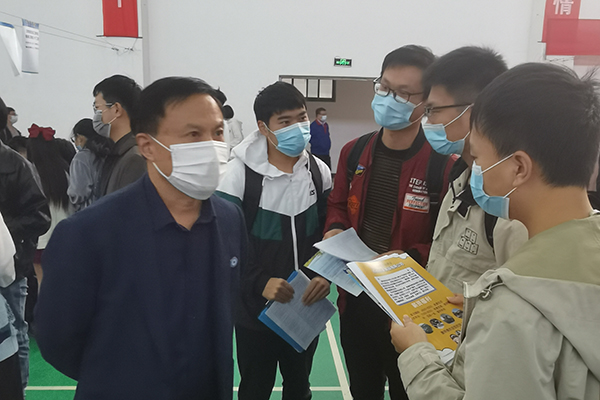 11月14日上午,安徽省2020年农林类高校毕业生就业市场暨拼搏平台_拼搏网页版2021届毕业生秋季招聘会在凤阳校区西区体育馆举行。机械工程学院院长陈丰、党总支书记张严政、党总支组织员路云以及全体毕业班辅导员、专业课教师等,深入现场看望、指导参加招聘会的毕业生,并与企业人员进行深入交流。