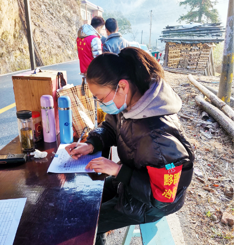 吴航,食品质量与安全192班学生,疫情期间在安徽省休宁县海阳镇参加志愿抗击疫情工作,主要负责巡逻村庄,提醒村民出门戴口罩,减少出门次数,不要聚集。他说:“得知村里招募卡点值守志愿者后,海阳镇万全村上汶溪村民组微信群里不安静了,村民积极报名,主动申请加入监控卡点值班队伍,为防疫工作贡献一份力量。因为疫情,镇村党员干部入户宣传、站岗值守非常辛苦,虽然我还不是党员,但也想尽一份力,做些力所能及的事,所以我向村主任提出了申请,参加到这次的防疫工作中。”