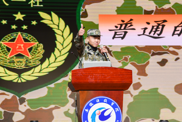 退役大学生胡锦铭在宣讲“永挑重担,永担先锋”主题时向同学们展示了中国陆军“铁军”的风采以及他和班长们的军营故事;“我与火箭军的不解之缘”主题宣讲中,洪义飞向同学们介绍了我国战略威慑的核心力量、大国地位的战略支撑、中国人民解放军的王牌军种火箭军,引起了现场同学的浓厚兴趣;“黑班长”丁俊杰则带领同学们走进了中国人民武装警察部队,详细了解武警部队日常生活和训练;侦察兵退役的叶建伟讲述了他“传奇”的侦察兵之旅,侦察兵之苦,侦察兵之能让同学们肃然起敬;从一名普通学生转变成一名优秀教官的唐立鹏重点介绍了军人的执行力、做事的准则等;巾帼不让须眉的武警退役大学生高璇,阐述了一名话务员的职责,日复一日都在做着同样事情,不知疲倦的背、听、说等,只是为了能够准确的转述上级所下达的命令。