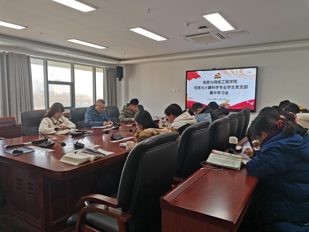 为切实推进新时代党建示范创建和质量创优,全面落实新时代党的建设总要求,不断提升党组织的战斗力和凝聚力,12月16日下午,信息与网络工程学院各党支部召开政治理论学习会。信息与网络工程学院党委委员深入到所联系党支部指导党员学习研讨。