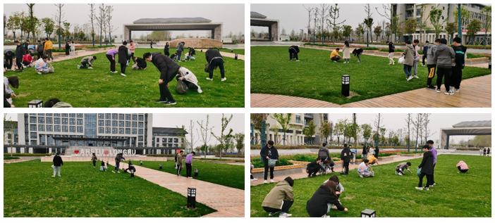 4月7日下午,辅导员丁阿敏老师组织学院全体学生积极参加校园环境清扫活动。同学们走进校园的每个角落,他们分散在图书馆前、分散在致知楼旁,他们用双手装扮着校园环境,用双脚丈量着每一寸土地,他们有说有笑,开心热闹。不一会儿的功夫,校园环境变得整洁干净了起来。同学们纷纷表示:“大家团结一致打扫卫生,感觉更亲近了,劳动让我们感受到了集体的力量”、“通过这次劳动让我认识到工作的辛苦,以后我会更珍惜干净舒适的校园环境,再也不会乱扔垃圾了”。通过身体力行的劳动教育,同学们感受到了劳动的辛苦,体会了劳动的收获,他们的身影也成了校园内一道美丽的风景。