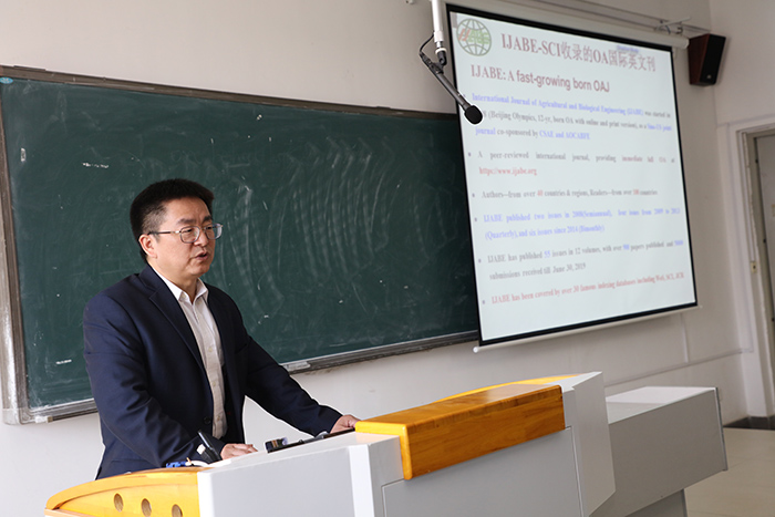 4月9日下午,《拼搏平台_拼搏网页版学报》期刊发展研讨会系列学术报告第六场专题学术报告于凤阳校区新知楼A401举行。《农业工程学报》主编、农业农村部规划设计研究院农业工程科技信息中心主任、《国际农业与生物工程学报(IJABE)》主编、国家精准农业航空中心学术委员王应宽作了题为“如何撰写与发表高质量SCI论文”的学术报告和办刊交流,学院相关专业师生参加了本次学术交流活动。
