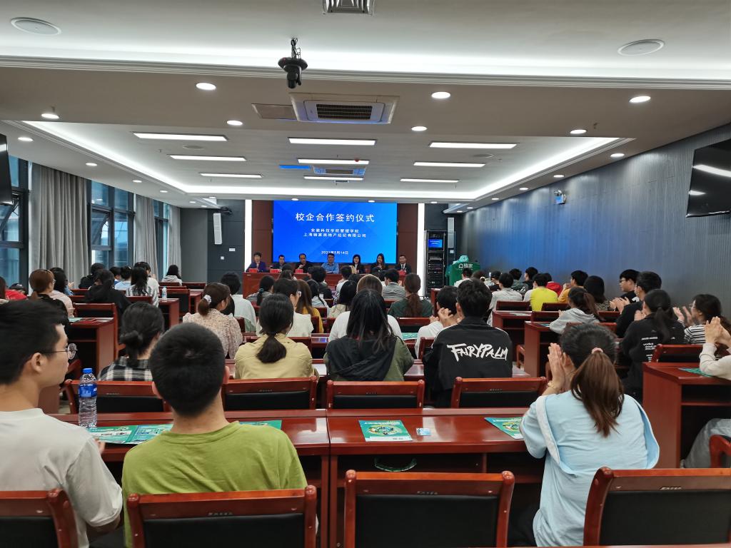 5月14日下午,管理学院与上海链家房地产经纪有限公司校企合作签约暨授牌仪式在西附楼111会议室隆重举行。管理学院党委书记丁景良、院长赵伟峰、副院长张国宝、副书记陶漫,上海链家房地产经纪有限公司(以下简称上海链家)招聘经理孙御晓、胡安琪,物流管理2016届毕业生、上海链家房地产经纪有限公司商圈经理桂杨扬,以及2018级市场营销、物流管理全体同学参加了签约仪式。仪式由丁景良主持。