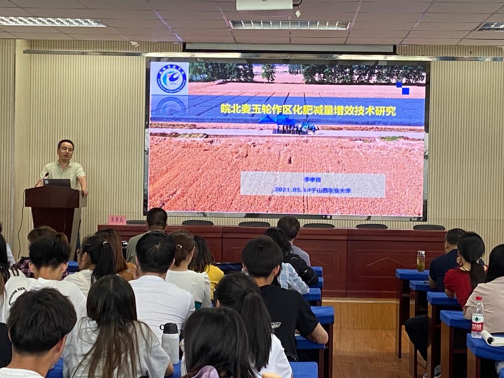 14日下午,李孝良一行与山西农业大学资源与环境学院进行了工作交流,党委书记陈斌、副院长刘奋武、副院长程永钢、副院长李廷亮热情接待,双方就就一流专业建设、人才培养、社会服务、与地方农科院的合作等方面进行了深入交流,并参观了学院实验教学中心、学科平台。应刘奋武邀请,李孝良和邹长明分别作了题为《皖北麦玉轮作区化肥减量增效技术研究》《绿肥抗逆给我们的启示》的学术报告,同山西农业大学资源与环境学院师生就化肥减量增效技术、绿肥抗逆品种选育等进行了深入交流。