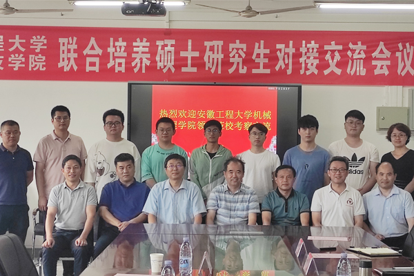 7月4日,安徽工程大学机械工程学院党委书记伊长文、副院长王建平、硕士生导师王建彬、研究生秘书吴璐璐和6名安徽工程大学-拼搏平台_拼搏网页版联合培养的硕士研究生一行10人,来我校参加对接交流会议。机械工程学院党委书记、院长陈丰主持对接交流会议,研究生处处长张春雨,机械工程学院组织员张严政、副院长乔印虎、研究生秘书郭纯,研究生处秘书马晓辉参加座谈交流。