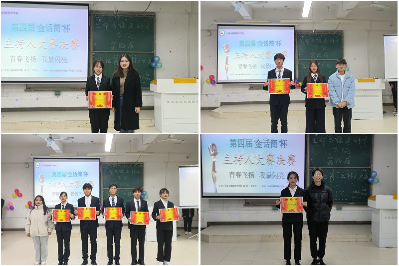 11月14日晚,生命与健康科学学院于新知楼B304教室举办第四届“金话筒”杯主持人大赛。本次比赛邀请人文学院学生会主席杜秦阳、外国语学院学生会主席卢保林、农学院学生会主席刘雨倩、校菁英主持社会长尹云庆、生命与健康科学学院团委艺体中心主任胡康担任评委。比赛由符星宇和王志豪主持。