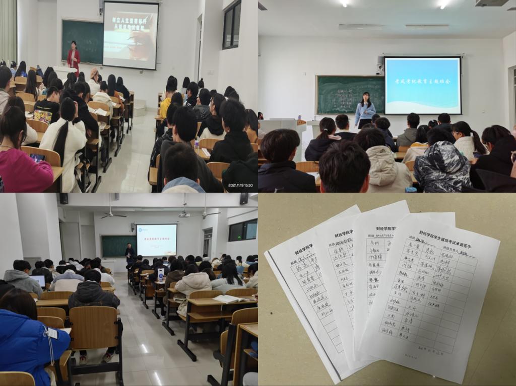学风是大学精神的集中体现,是教书育人的本质要求。考风是学风建设的晴雨表,关系到公平公正和诚信原则的贯彻,也关系到人才培养质量和学校的健康发展。12月以来,财经学院多措并举,协同推进,狠抓考风考纪教育。