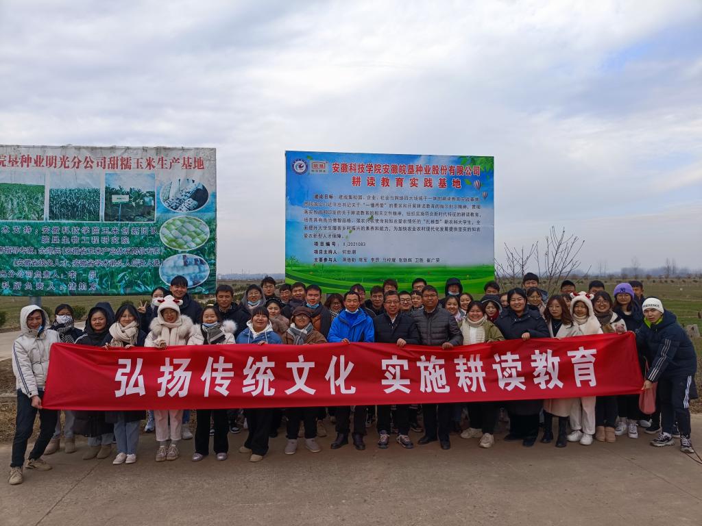 座谈会后,双方共同出席耕读教育实践基地挂牌仪式,何世潮介绍了农学院在皖垦种业股份有限公司设立耕读教育实践基地的项目申报历程及基本情况。他指出,耕读教育践行“亦耕亦读”,是实施三全育人、以文化人、以文育人的重要途径,是加强劳动教育的重要载体,也是弘扬我国耕读传家优秀传统文化的重要抓手。要让广大青年学子走进农村、走近农民、走向农业,了解乡情民情,学习乡土文化,提升学农知农爱农素养和专业实践能力,为全面推进乡村振兴,加快生态文明建设,提供人才支撑。