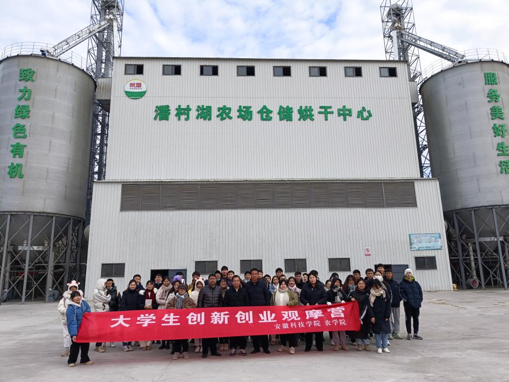马梓耀还陪同何世潮一行参观了安徽皖垦集团明光分公司的软麦稀播繁殖田、潘村湖农场仓储烘干中心、潘村湖农场农科所、皖垦种子加工中心,详细介绍了良种繁育、种子生产加工及包装流程。在小麦良种繁殖实验田内,在储焰芳的指导下,同学们还实地开展了通过小麦有效分蘖数进行小麦良种亩产量的计算,寓教于实践,强化了同学们专业知识认知。