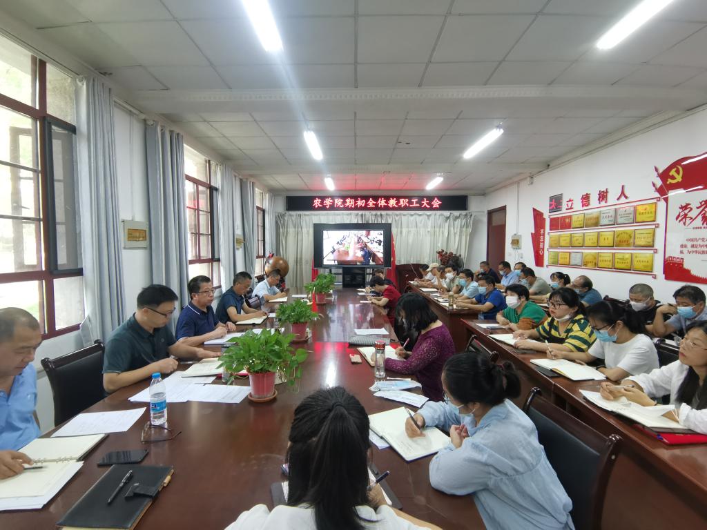 9月7日下午,农学院在学院会议室召开期初全体教职工大会,回顾总结暑期工作情况,部署开学初常规、重点工作和推进年度目标任务工作,全体教职工参加会议,农学院党委副书记、院长崔广荣主持会议。