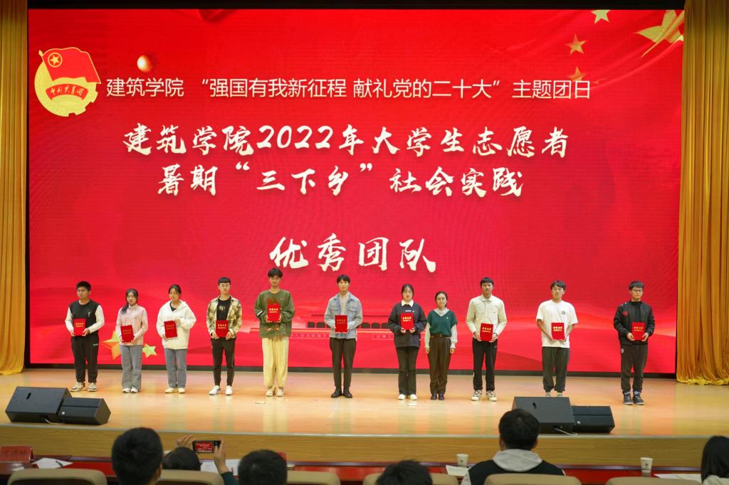 10月15日,建筑学院在图书馆东辅楼二楼报告厅开展“强国有我新征程 献礼党的二十大”主题团日。学院党委副书记谢宜勤、团委书记沈德艳,团学干部,2022年受到团内表彰的先进集体和优秀个人代表,以及2022级全体新生参加活动。
