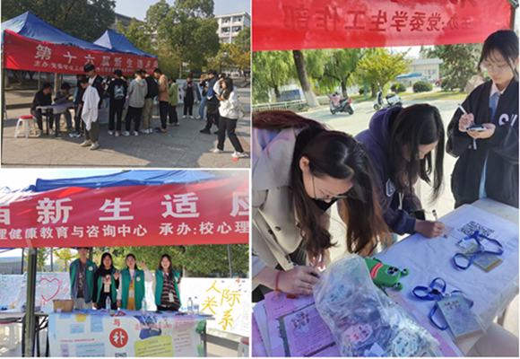 活动现场,校学生心理委员联合会及各学院学生心理委员联合会精心准备了以“人际交往、学习适应、恋爱关系”等为主题的宣传展板,从多个维度宣传大学生活适应的方法和途径,引导同学们尽快适应大学生活。校学生心理委员联合会的工作人员热情邀请路过的同学参加“数字爆炸”“手舞足蹈”“正话反说”等互动小游戏,以轻松愉快的游戏方式引导同学们积极适应新环境。许多同学在“新生寄语”墙上写下青春寄语,表达自己对美好大学生活的期望。活动现场还发放了“心联心语”小报、“校园十佳心委”特刊小报和书签等心理健康宣传材料。