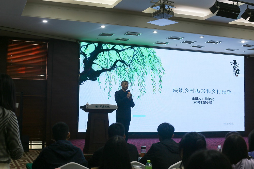 课程实践上,禾泉小镇董事长蒋保安以《漫谈乡村振兴和乡村旅游》为题向全体研究生作了精彩报告。蒋保安回顾了禾泉小镇的发展历程,陈述了禾泉选址、区域布景,到产业规划、旅游开发的种种思路。他强调,乡村旅游是推进乡村产业振兴的重要途径,自禾泉小镇建设之初,自己的命运就与禾泉小镇绑在了一起。20年里,他以禾泉小镇为根基,赤起脚能刨开黄土、抬开手能拿得准政策,全力以赴扑在禾泉,扑在中国乡村旅游开发探索的前列。他以“情怀”为出发点,用脚踏实地和求真务实的作风做活了乡村旅游,服务了乡村振兴。