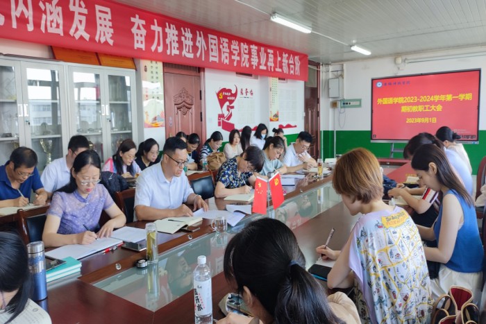 9月1日上午,外国语学院在学院会议室召开全体教职工会议,对2023上半年和暑期工作进行全面总结,对新学期各项工作进行部署。学院党政领导及全体教职工参加了会议,会议由院长刘萍主持。