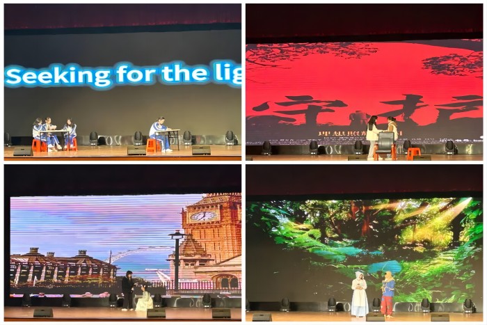 本次比赛共有9个队伍参加,各支队伍充分发挥创造力和想象力,团队协作将每场话剧演绎的精彩绝伦。在舞台上,同学们融入情景,用心扮演角色,感悟角色的内心世界。他们自信从容,表达清晰,动作流畅,感情真挚,表演忠于原著的同时,又对剧目进行了个性化解读,让观众领略到话剧的魅力,博得了现场阵阵掌声。经过两个多小时的精彩比拼,《灰姑娘》荣获一等奖,《逃出大英博物馆》《Seeking for the light》荣获二等奖,《绿野仙踪节选》《守护》《Youth Building Dreams, Embarking on a new Journey》荣获三等奖。