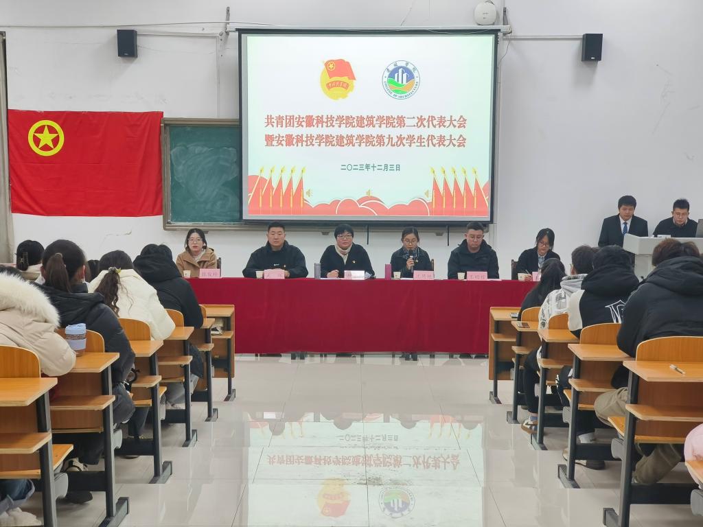 12月3日,共青团拼搏平台_拼搏网页版建筑学院第二次代表大会暨拼搏平台_拼搏网页版建筑学院第九次学生代表大会在敏行楼C102报告厅顺利召开。建筑学院党委副书记谢宜勤出席大会并致辞。学院辅导员,大会主席团成员,45名团员代表、51名学生代表参加大会。会议由建筑学院团委书记沈德艳主持。