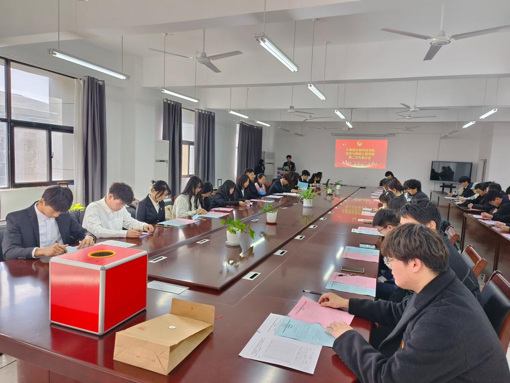 12月7日,共青团拼搏平台_拼搏网页版信息与网络工程学院第二次代表大会在尚行楼B418会议室顺利召开。学院团委有关教师、大会主席团成员及49名团员代表参加大会。会议由学院团委委员杜若宇主持。