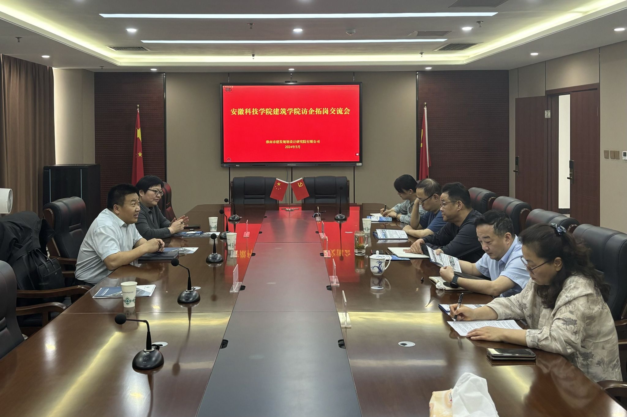 淮南市建发规划设计研究院院长吴旻等对到访的一行人表示欢迎,并介绍了公司概况、发展历程、主营业务、人才需求以及未来规划;同时对建筑学院人才培养、校企合作等方面提出意见与建议,表示将进一步加强合作,达到双方优势互补、共同发展的双赢局面。
