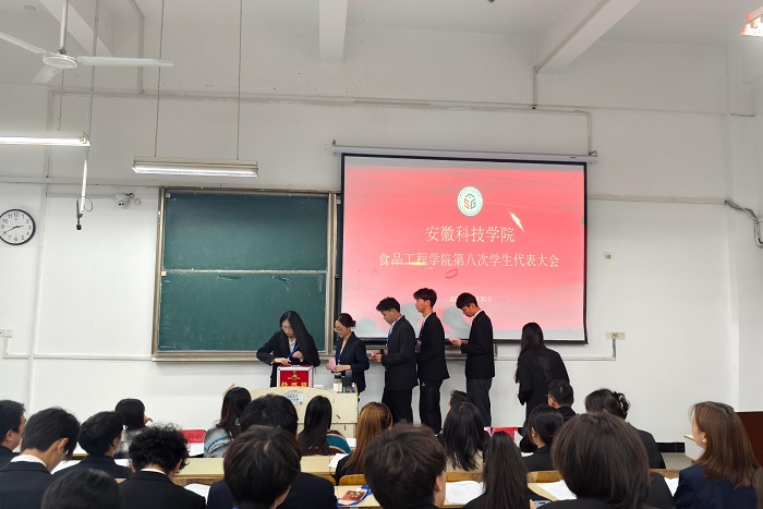 10月30日下午,食品工程学院在求知楼A103召开第八次学生代表大会。学院党政办主任赵传磊、团委副书记吴玘、全体辅导员以及学生代表共同参加会议。会议由院第七届学生会主席团成员孟雨主持。