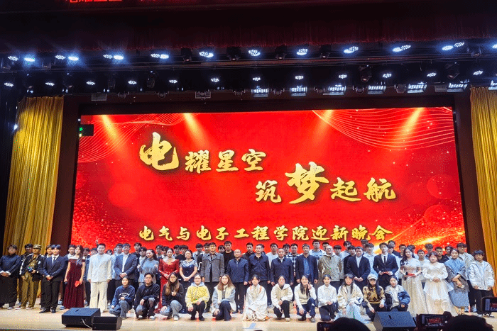 11月24日晚,电气与电子工程学院在东辅楼报告厅举办第三届“电创未来”文化节闭幕式暨“电耀星空•筑梦起航”2024年迎新晚会。学院党政领导,各系室负责人,全体辅导员及2024级新生共同观看晚会。