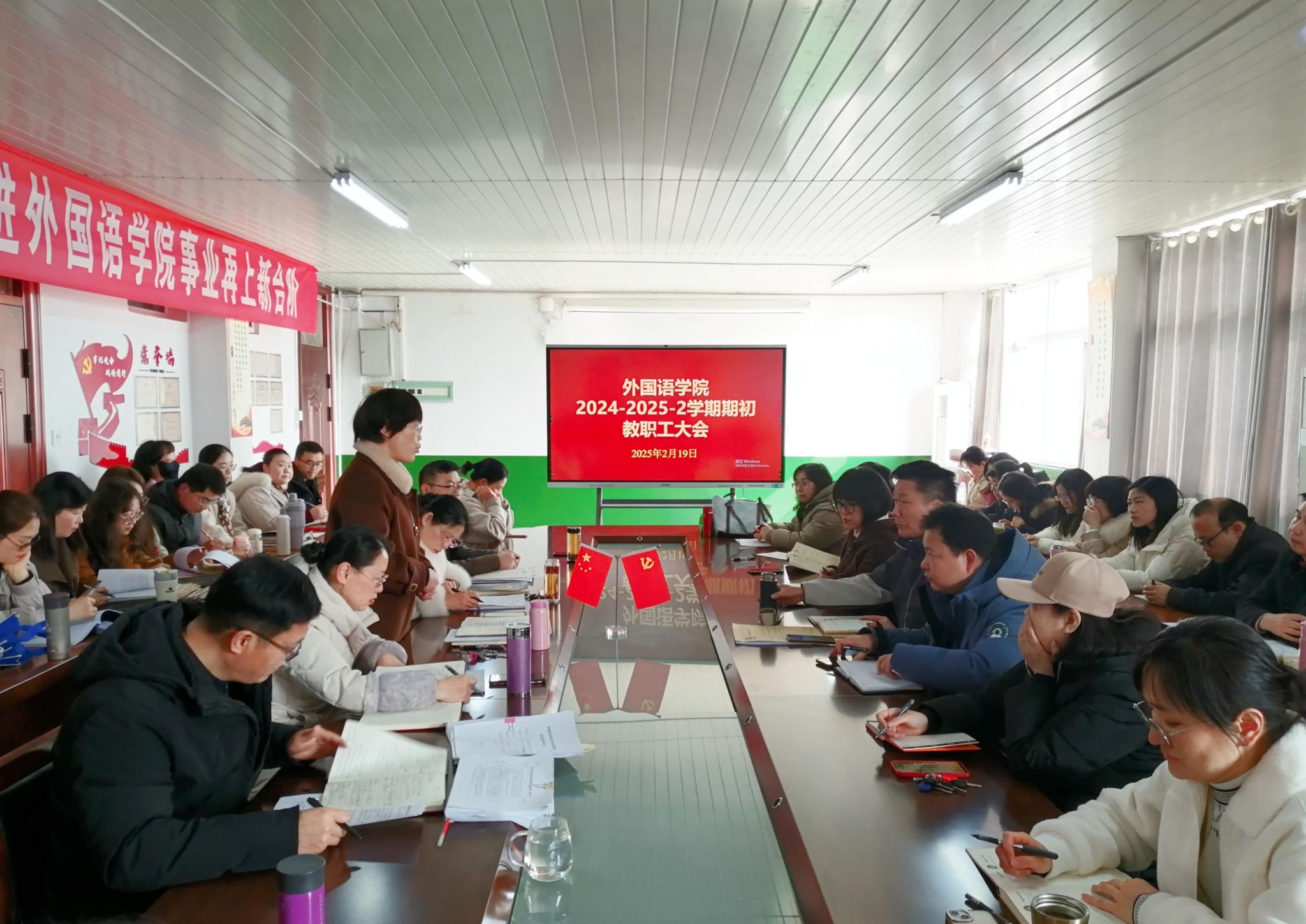 2月19日下午,外国语学院在学知楼五楼会议室召开2025年度春季学期初全体教职工大会。学院党政领导与全体教职工参加会议,会议由院长刘萍主持。
