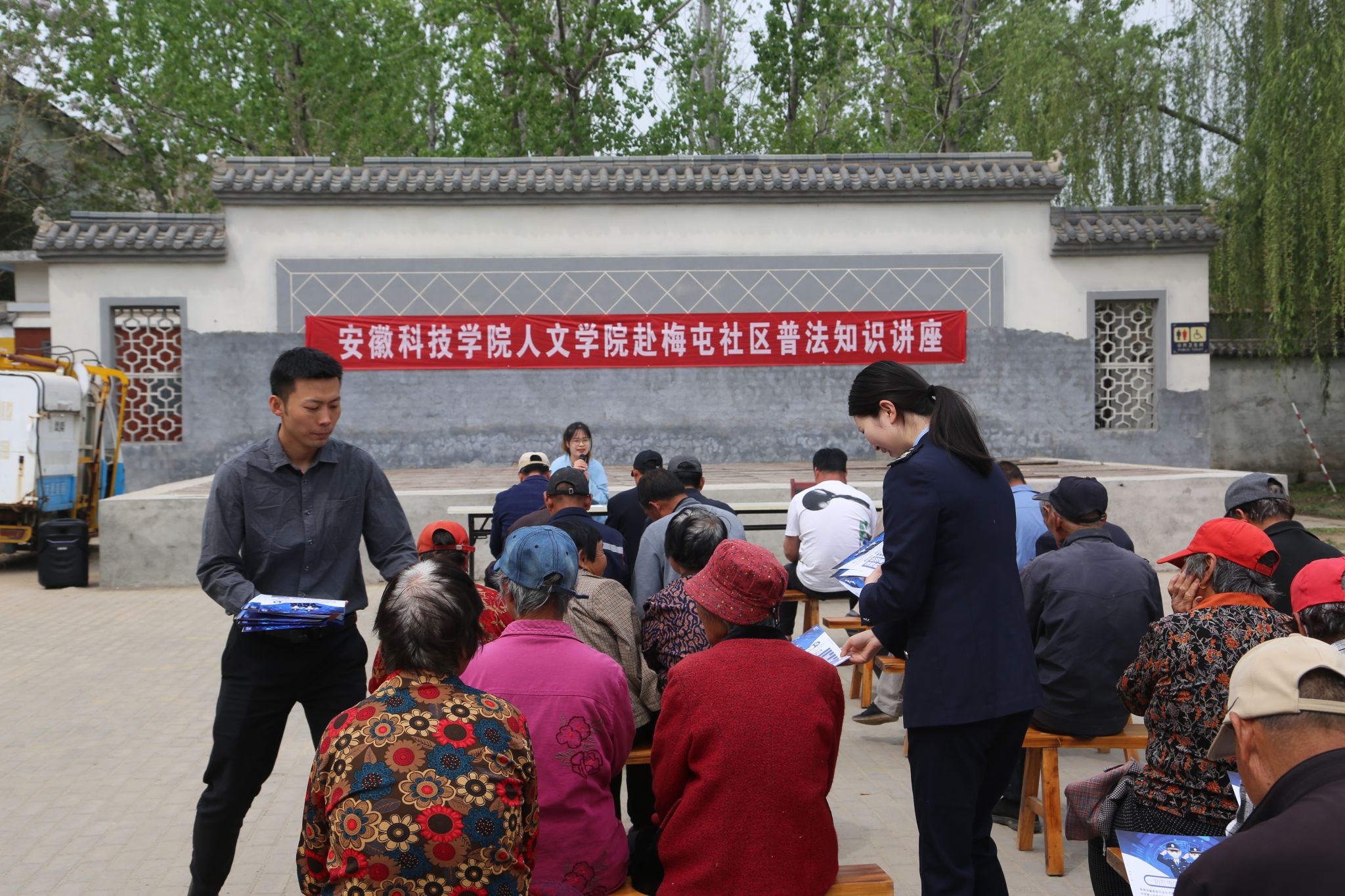 签约授牌仪式结束后,李晓东、苏兆龙为“梅屯书屋”举行了图书捐赠仪式;焦雪松、范一博面向梅屯社区居民举办普法知识讲座;在梅屯社区驻村工作队副队长王旋(汉语言文学专业2008届毕业生)等社区干部的陪同下,人文学院党委一行携带生活用品和学习用品,深入梅屯社区,看望慰问孤寡老人和留守儿童,并与他们亲切沟通交流,表达关心关爱之情。
