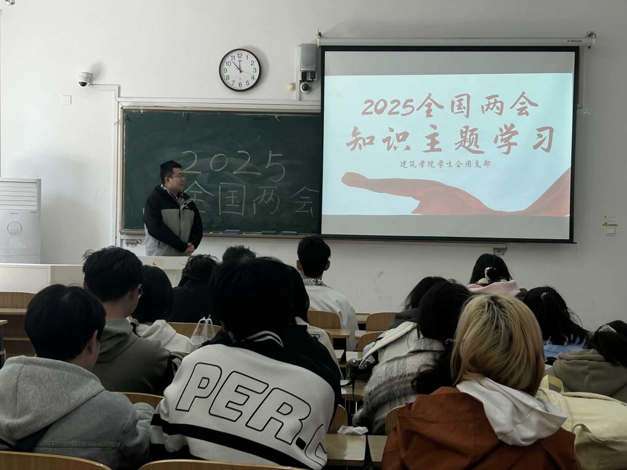 为深入学习贯彻2025年全国两会精神,引导广大青年学子准确把握国家发展脉搏,将个人理想融入全面建设社会主义现代化国家新征程,3月21日中午,建筑学院在致知楼C105成功开展了2025全国两会知识主题学习,建筑学院学生会团支部全体人员参加,会议由学生会执行主席王梓阳主持。