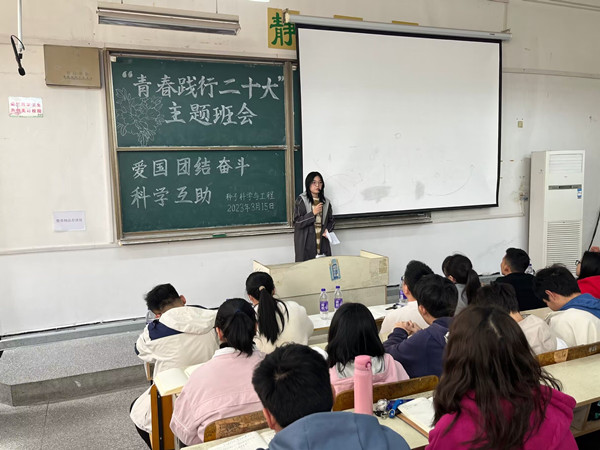 主题班会紧扣“青春践行二十大”主题,围绕“爱国、团结、奋斗、科学、互助”五个关键词开展。费圣杰、宁子翔、杨宁、许诺等13名同学分别结合自己的经历和种子科学与工程专业分享了关于践行党的二十大精神、立志成长为新时代好青年的思考和实践。农学院辅导员薛晶晶对同学们的演讲一一点评。与会老师分别结合自身经历点评、分享人生感悟。