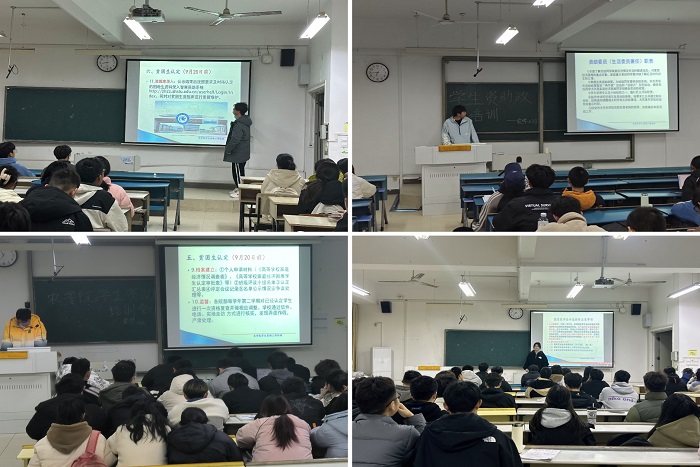 各班辅导员在新学期开学之初以主题班会的形式帮助学生了解资助的相关信息及流程。各班级生活委员借助PPT,围绕高校学生资助政策体系,从国家奖学金、国家励志奖学金、国家助学金、国家助学贷款等几个方面详细说明了各个资助政策的资助类别、资助对象、发放金额和发放时间等相关事宜,帮助学生们全面了解各种资助政策的意义与适用范围。各班还开展了防电诈和诚信知识宣传,切实提高学生的诚信意识和金融安全防范意识。