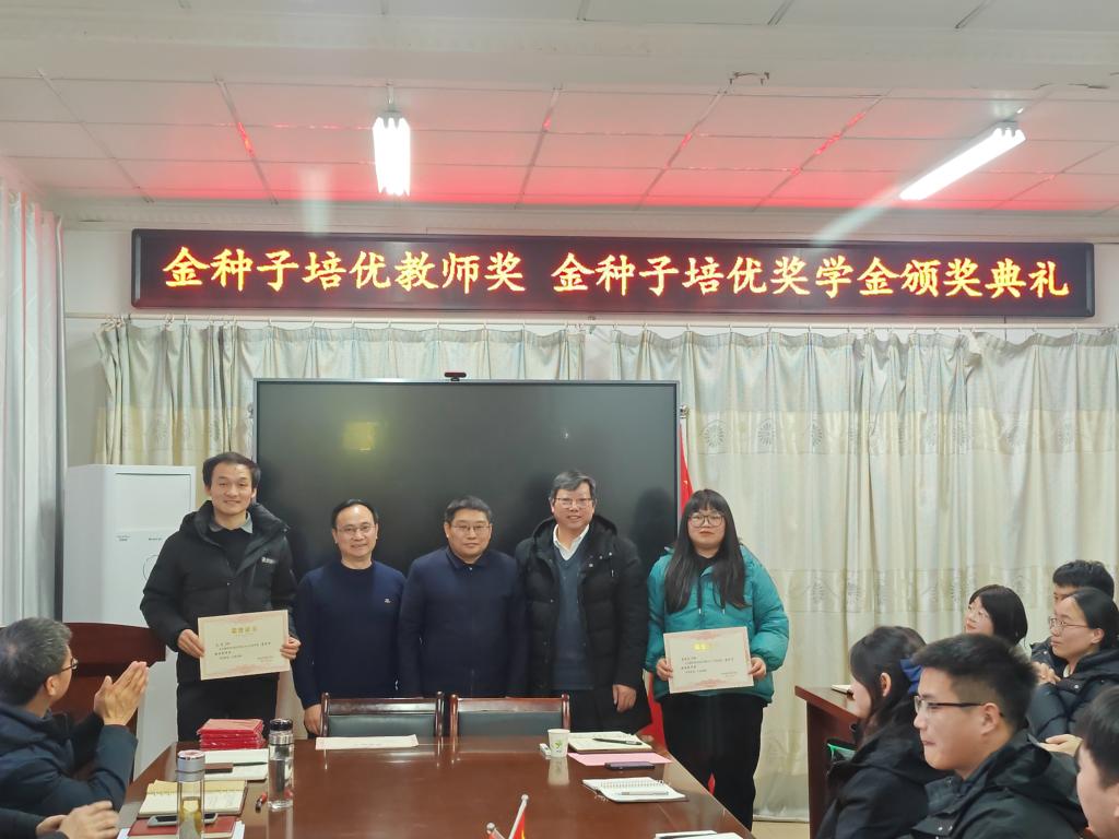 1月11日下午,“金种子培优基金”2023年度“金种子培优奖学金”“金种子培优教师奖”颁奖仪式在农学院会议室隆重举行。学校党委委员、副院长李升和,上海景领投资管理有限公司合伙人、基金发起者黄宪先生,二级教授、基金发起者农学院黄先忠老师,农学院党委书记何世潮,副书记张轶辉,副院长舒英杰和李文阳以及教师代表和学生代表出席颁奖仪式。根据《拼搏平台_拼搏网页版农学院“金种子培优基金”申报细则》和申报人申请,经“金种子培优基金”评审委员会评审,李瑞宁、艾昊两位青年教师荣获金种子培优教师奖,孙张论、李婷、杜孟祥、杨德坤和王静婷五位农艺与种业专业研究生荣获金种子培优奖学金。颁奖仪式由农学院党委副书记、院长崔广荣主持。