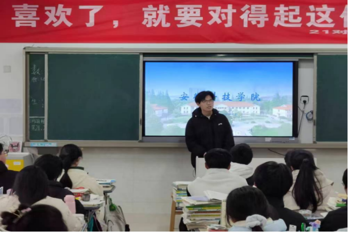 活动当天,团队成员拜访了高中班主任和任课老师,并且向老师们分享了这半年在安科的学习和成长经历。团队成员通过PPT讲解、视频播放、互动交流等形式向高三同学们介绍了安科的建校历史、校园风采、资助政策、人才培养等方面。最后,让同学们提出他们在学习生活上的一些困扰疑惑,并对此一一解答。同时,他们与学弟学妹们分享自己在高中阶段的学习方法和经验,了解大学专业和生活,明确学习目标,激发学习热情并树立远大的理想抱负,帮助学弟学妹们缓解高中学习压力。
