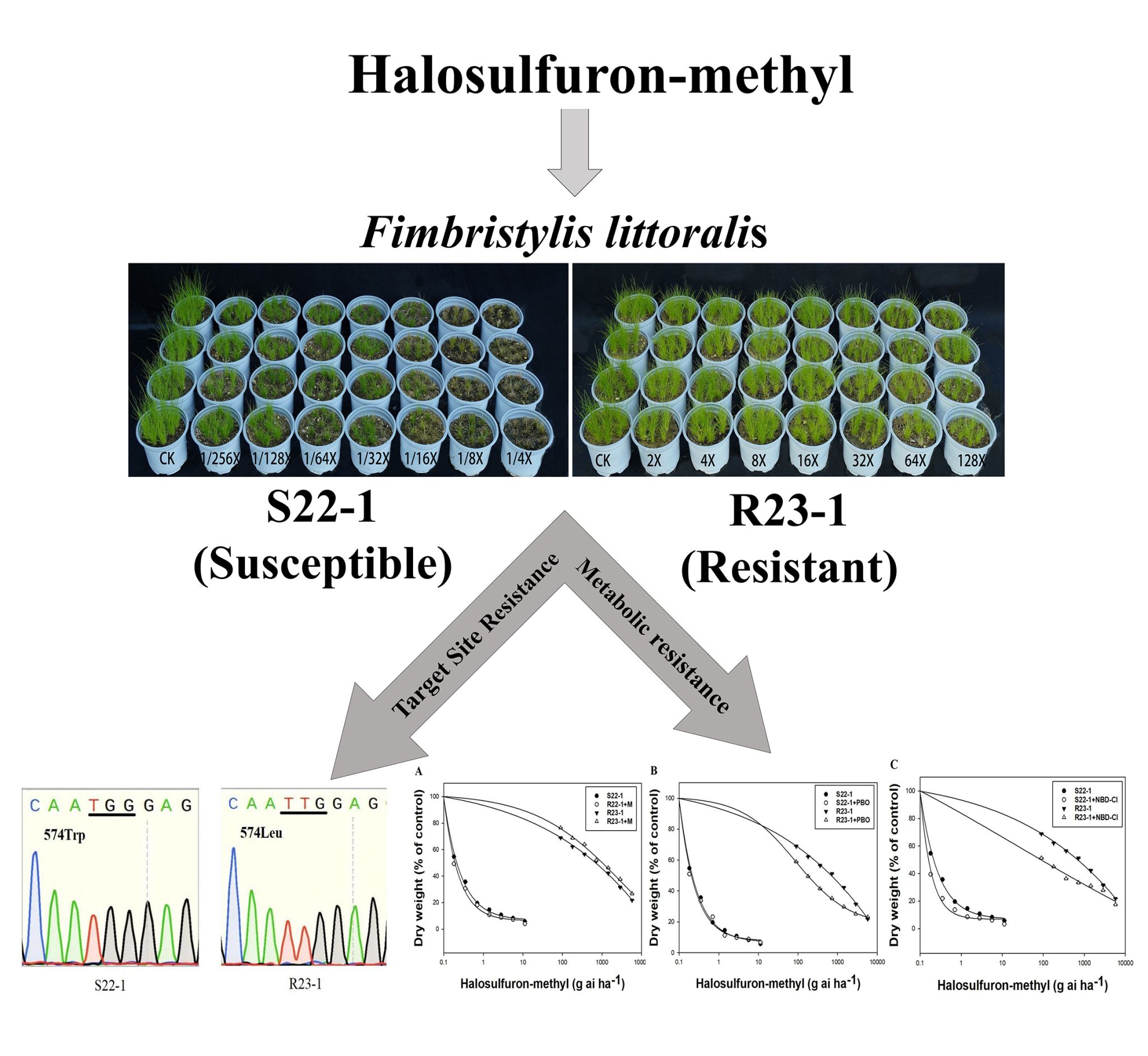 近日,我校农学院毕亚玲教授团队在国际知名期刊《Pesticide Biochemistry and Physiology》(中科院一区Top期刊,IF=4.2)发表了题为“The Trp-574-Leu mutations together with enhanced metabolism contribute to cross-resistance to ALS inhibiting herbicides inFimbristylis littoralis”的研究论文。该研究首次揭示了稻田恶性杂草水虱草(Fimbristylis littoralis Gaudich.)对乙酰乳酸合成酶(ALS)抑制剂类除草剂的抗性机制。硕士研究生史悦悦和青年教师吴志文博士为共同第一作者,毕亚玲教授为通讯作者,拼搏平台_拼搏网页版为唯一完成单位。