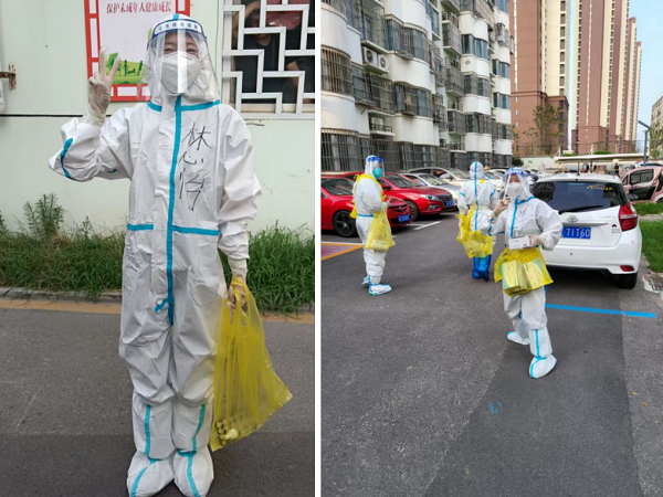 疫情期间,林心怡始终坚守在自己的岗位,作为单元长,每天要统计所在单元居民健康码情况,隔离人员名单,特殊人员生活情况并帮助居民统计团购物资数量,挨家挨户的配送物资。林心怡还每天协助医护人员一起上门做核酸、收发抗原,及时检查、统计居家隔离居民的抗原结果。在繁重的工作之余,林心怡每天和社区志愿者一起进行环境消杀,及时处理社区生活垃圾,安抚隔离人员情绪等,即使是将近40度的酷暑天气,穿着隔离服和防护服的林心怡也从未想过退缩。