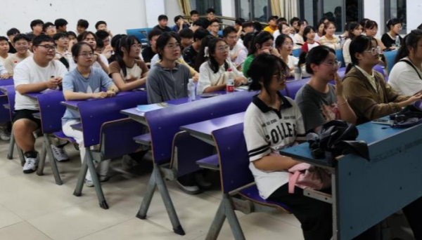 会议开始,班助分别进行自我介绍并分享大学生活经历。随后同学们积极上台自我介绍,相互了解各自的家乡和兴趣爱好等。最后,吴荡进行总结:同学们刚刚结束了高中三年的繁重学业来到大学,迎来了又一个新的人生起点,希望同学们能够尽快适应大学生活节奏,切换和整理学习思路,树立明确的学习目标,奋斗不止、不负韶华、不负自己、迈过星河、走向朝阳。