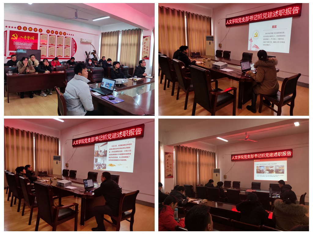 为深入学习贯彻习近平新时代中国特色社会主义思想和党的十九届六中全会精神,进一步压实各党支部书记履行全面从严治党责任,推动全面从严治党向基层延伸,切实提高党的建设质量,根据学校统一部署,人文学院党委于1月2日下午,在学院会议室举行2021年度党支部书记述职会议。学院党委成员,各党支部书记、支部委员参加会议,会议由学院党委书记杜士凤主持。