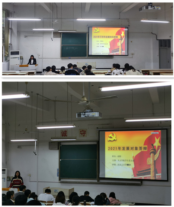 10月13日下午,人文学院2021年下半年拟发展对象答辩大会以支部为单位,分别在求B103和求B105教室举行。辅导员焦雪松、鲁冰冰、方明旺及各支部学生党员担任答辩会评委。