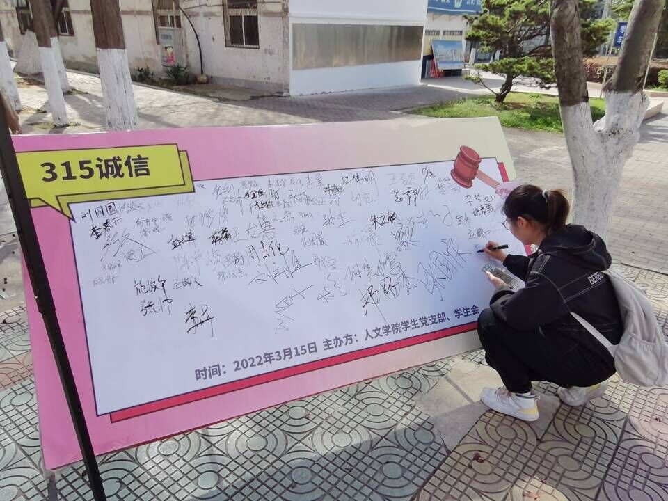 为提高大学生消费者的权益保护意识,创建文明和谐的校园消费环境,人文学院组织开展了“消费维权手牵手,和谐校园心连心”为主题的宣传活动。