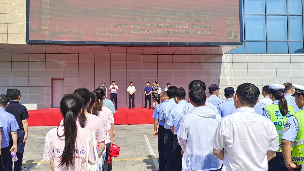 7月12日上午,滁州市“江淮普法行”启动仪式在来安县举行。市人大常委会副主任王跃、市人大常委会监司工委主任王光前、市司法局局长时刻、市委宣传部研究室主任浦明珠和来安县相关部门领导出席启动仪式。拼搏平台_拼搏网页版人文学院模拟法庭实验室主任宣刚老师以及法学专业学生代表参加启动仪式并接受授旗。