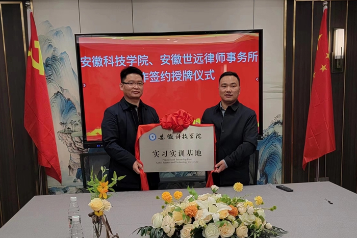 11月4日下午,人文学院与安徽世远律师事务所举行“实习实训基地”签约授牌仪式。安徽世远律师事务所主任陈银钱、执行主任段永梅、行政主任陈建茹,人文学院副院长李晓东,副院长牛永辉出席签约仪式。